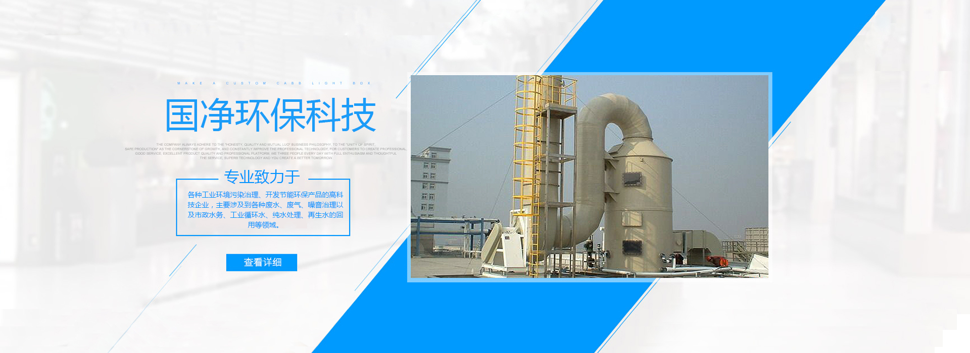 專業(yè)致力于各種工業(yè)環(huán)境污染治理、開發(fā)節(jié)能環(huán)保產品的高科技企業(yè),主要涉及到各種廢水、廢氣、噪音治理以及市政水務、工業(yè)循環(huán)水、純水處理、再生水回用、河流整治及生態(tài)修復等領域。